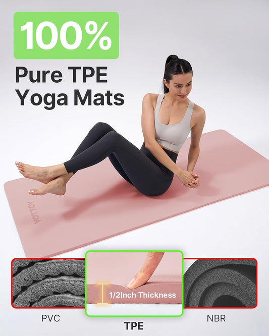 1/2-Inch Extra Thick Non-Slip Yoga Mat - Professional TPE with Carry Strap