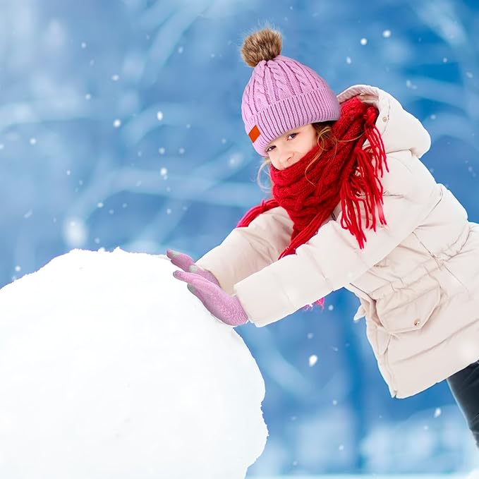 2-Set Toddler Winter Hat, Scarf & Gloves – Warm Knit Set for Girls & Boys (Ages 1–10, Purple/Pink)