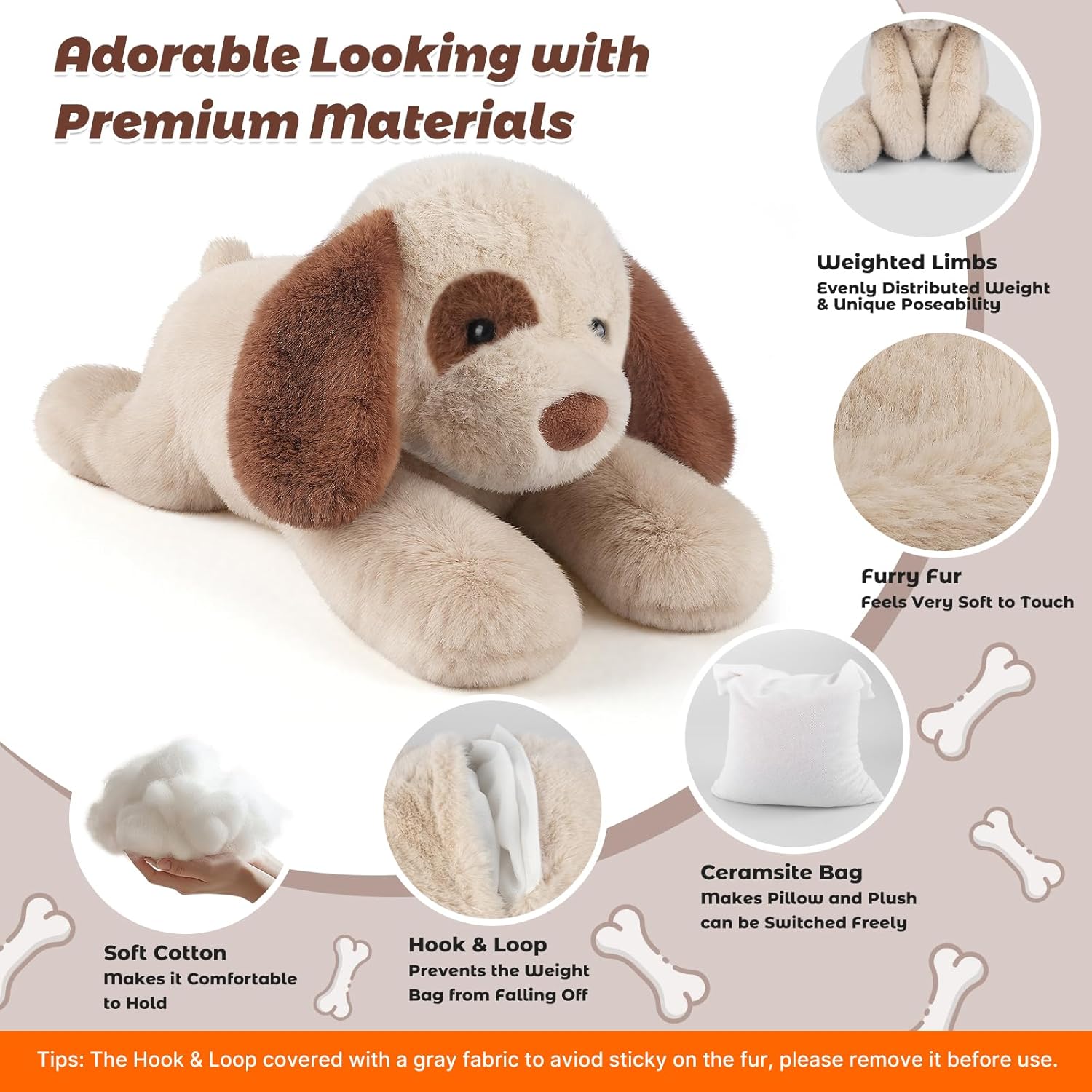 - Weighted Comfort for Versatile Advantage: This weighted stuffed dog for kids features soft bead-filled arms and legs for gentle pressure, enhancing sensory input and providing calming effects that promotes relaxation and better dream. Also make you feel huggable and secure without being too heavy. With the removable weighted bag design, it's not only a large weighted stuffed animal, a soft pillow plush as well.