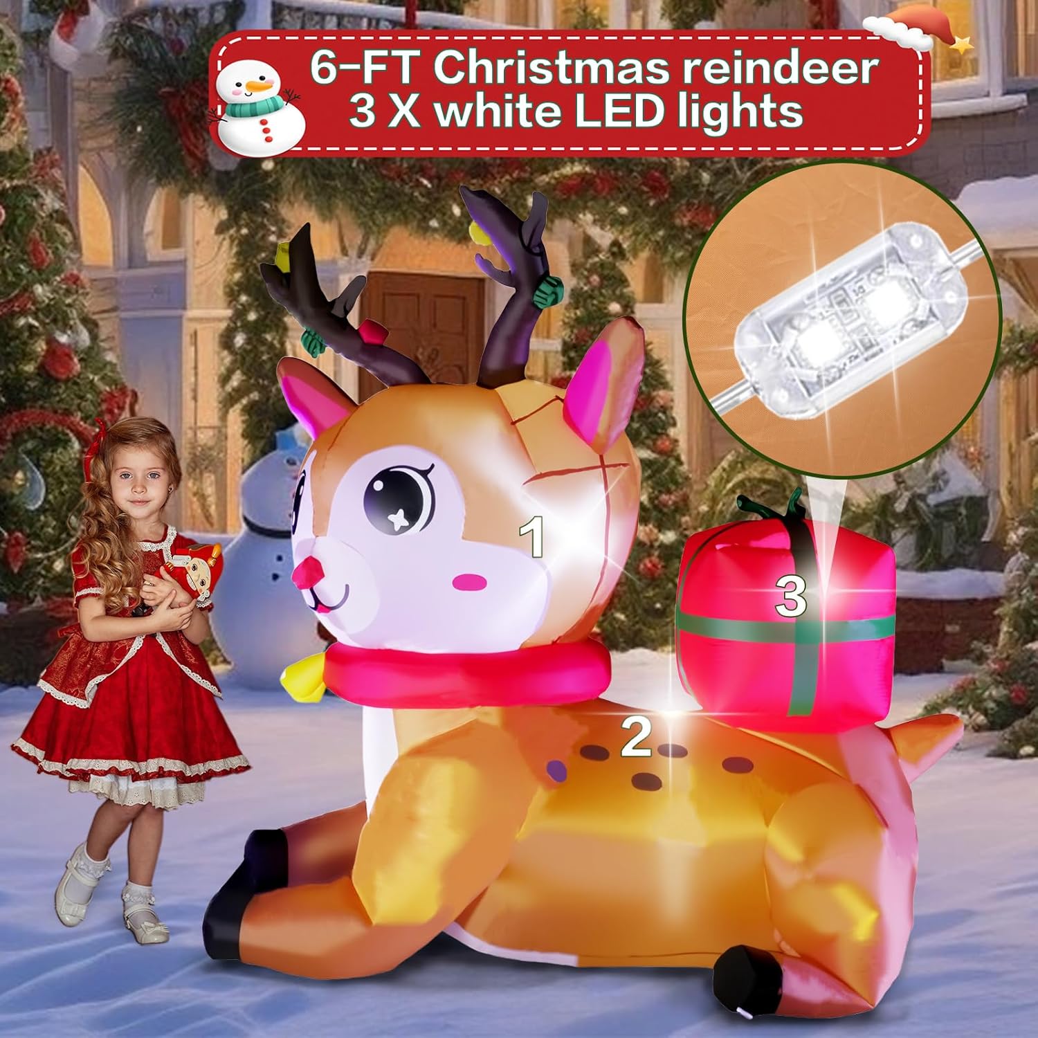 6FT Inflatable Christmas Elk Decoration with Built-in LEDs