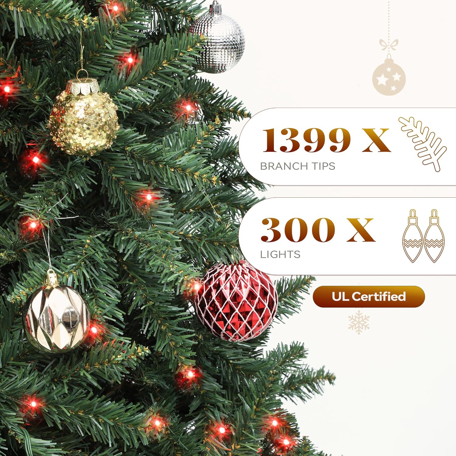 Crafted with plush foliage and 1,399 realistic branch tips, this tree brings a captivating natural look to your home, making it an eye-catching focal point for your holiday decor. -