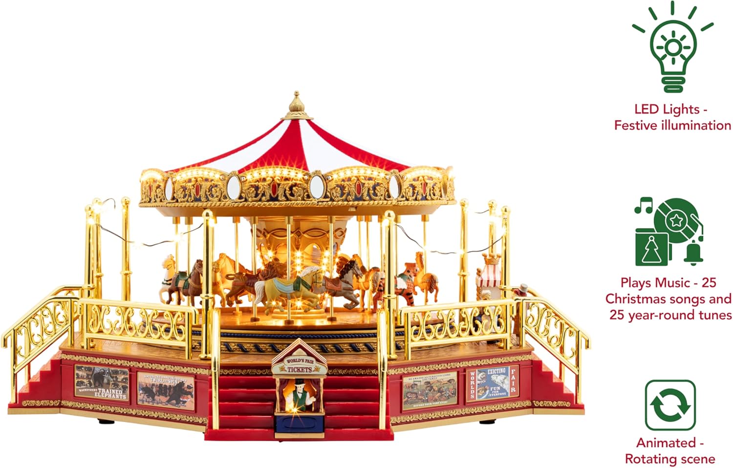 Animated & Musical: Enjoy the enchanting motion of this animated carousel as it spins and plays delightful melodies, adding cheer to your holiday celebrations.