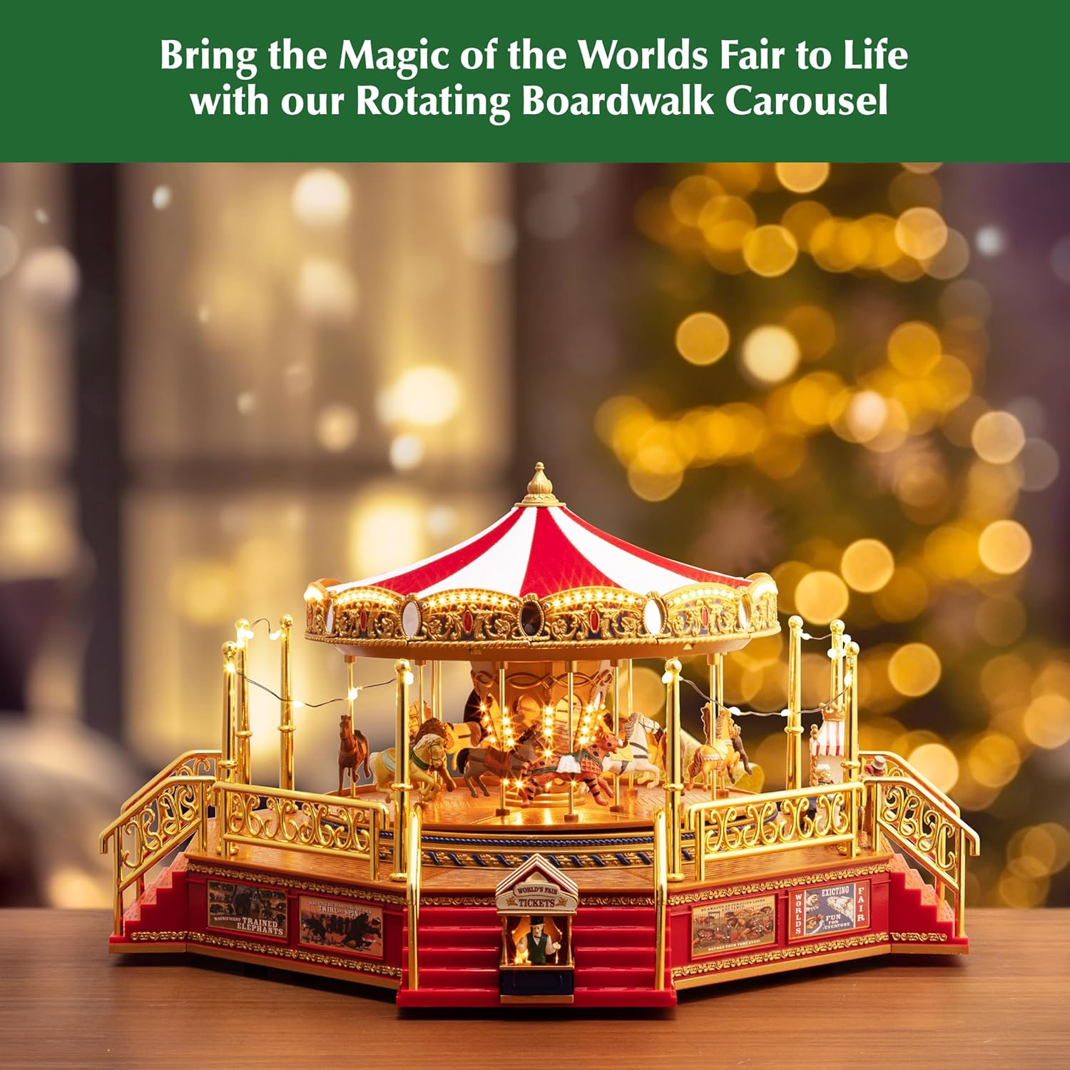 Make your festive season truly special with the World's Fair Boardwalk Carousel. Order yours today and let the magic of the carousel delight family and friends!