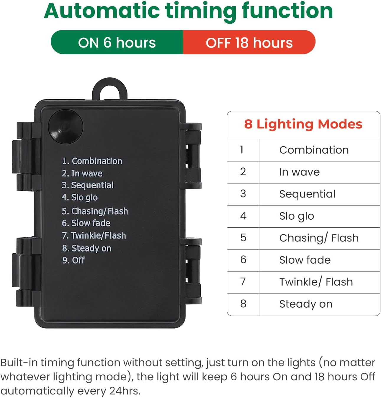 - User-Friendly Timer: The included battery box features a timer that automatically lights the tree for 6 hours and off for 18 hours, providing hassle-free operation as long as the batteries have charge.