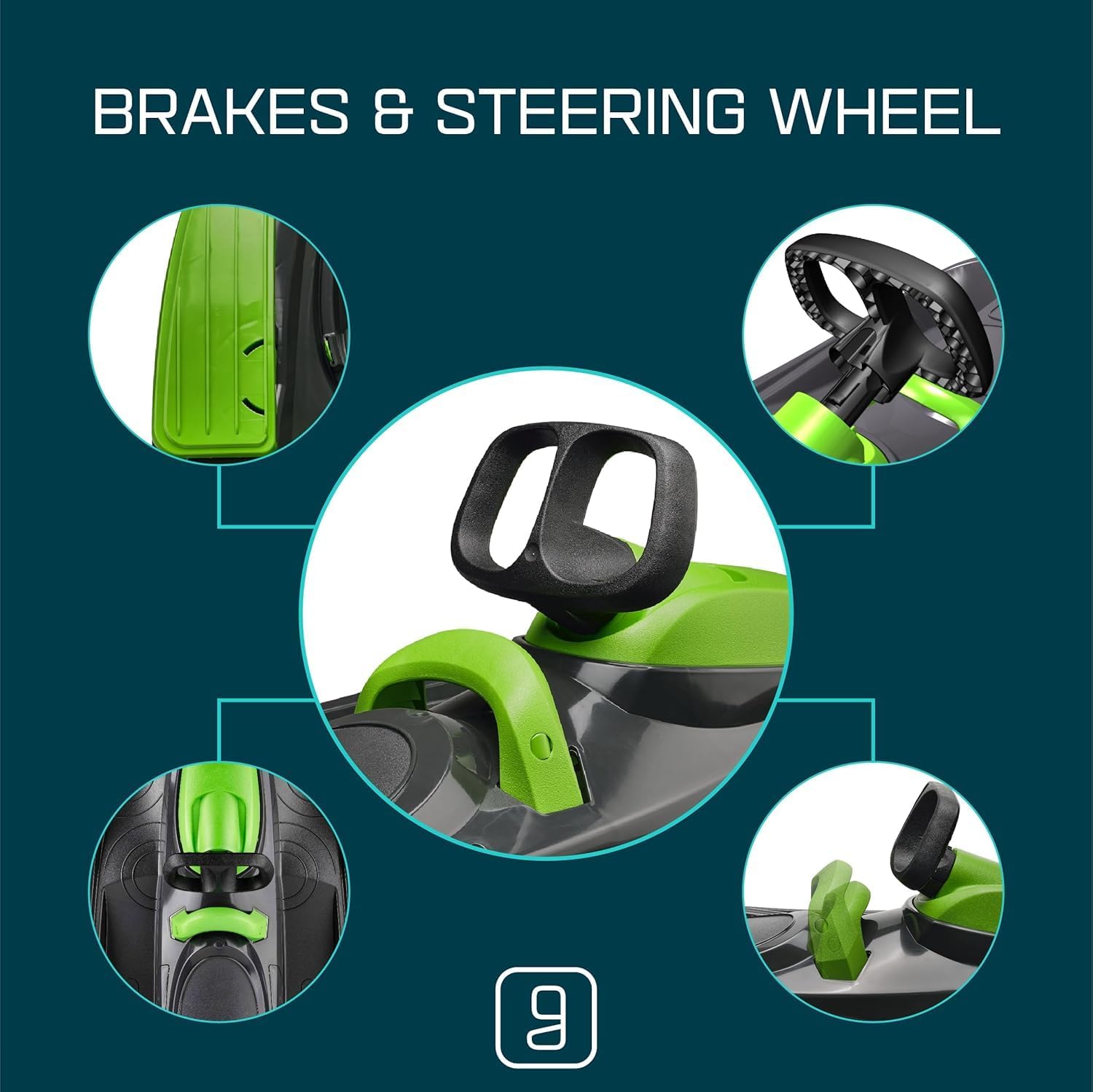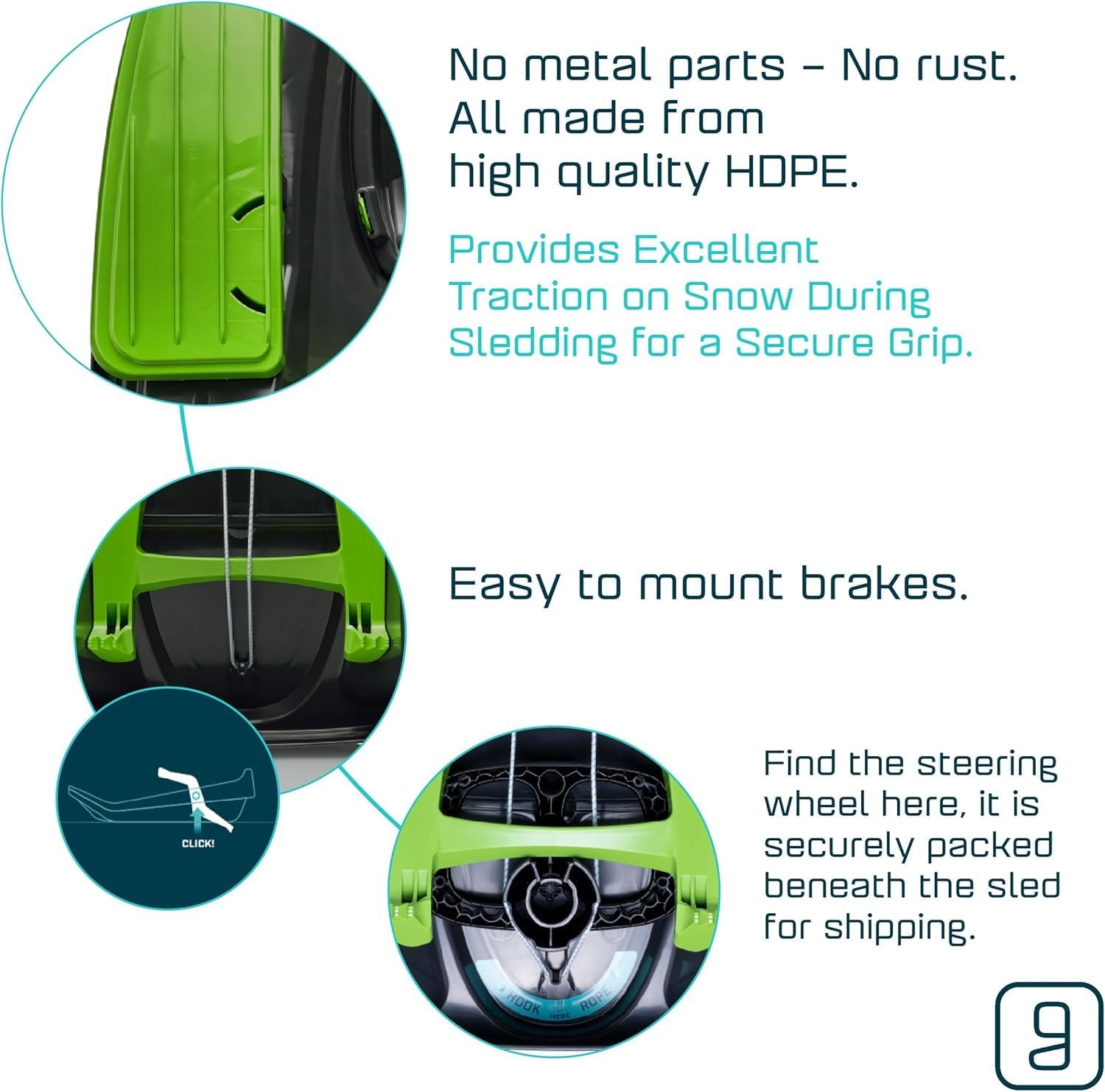 Snow Sled for Kids & Adults – Toboggan with Steering Wheel, Anti-Slip Seat & Brake (Mystic Green, 260 lbs, Age 3+)
